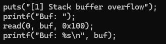 rsp는 0x50만큼 빼지만 우리가 입력하는 buf 배열은 rbp-0x40위치에 존재하므로 0x40(canary 포함) + 0x08(SFP)를 덮으면 main 함수의 return address를 출력할 수 있다.