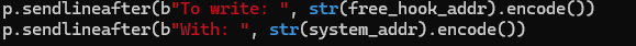 해당 부분에서 __free_hook함수 가 가리키는 값을 system함수의 값으로 바꿔준다.